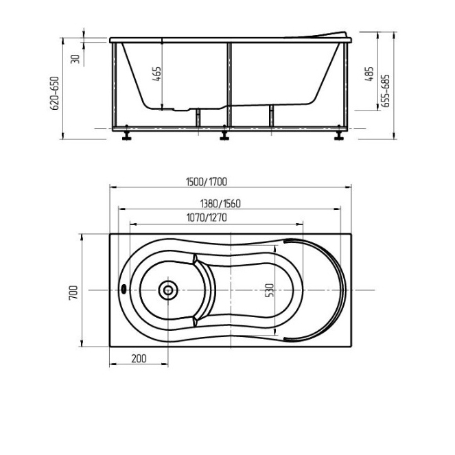Внутр. размер ванны, см: 138