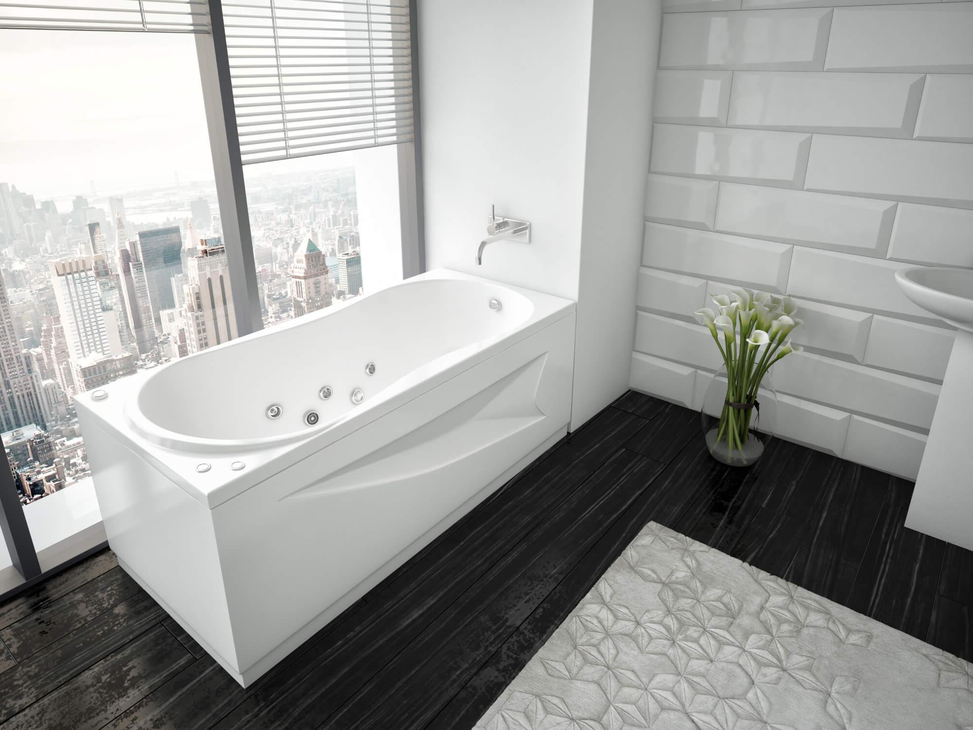 - Минимальный уровень шума — акриловые ванны достаточно бесшумны при наборе воды — стенки поглощают вибрации, создаваемые при падении воды в чашу ванны.