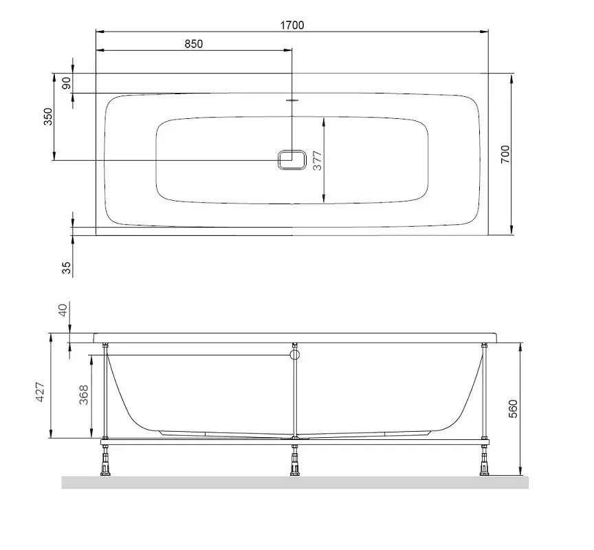 Каркас, система слив-перелив, панель фронтальная, ручки приобретаются отдельно.