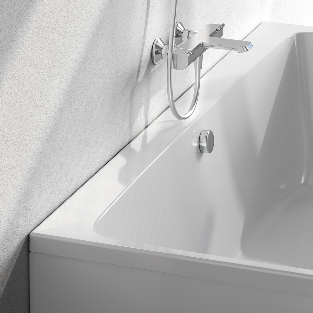 Коллекция Func — это не просто красивый внешний вид но и продуманные детали. Продукты Func создают стильное и комфортабельное пространство для жизни. Подчеркнутый оригинальный дизайн и практичная функциональность от дизайн-бюро DanelonMeroni (Великобритания / Италия). Широкий борт с одной стороны ванны добавляет дополнительное пространство для хранения. Теперь даже самое небольшое помещение может быть использовано оптимальным образом. Характерный дизайн: сочетание широкого борта с одной стороны с ультра-тонким бортом с другой стороны создает неповторимую квинтэссенцию стиля. А декоративная заглушка слива повторяющая форму самой ванны станет яркой деталью в интерьере. Разработанный совместно с ведущими терапевтами угол наклона спинки 125° обеспечивает оптимальную поддержку спины и максимальное погружение в воду. За счет низкой теплопроводности и теплоемкости акрила ванна поддерживает температуру набранной воды значительно дольше.