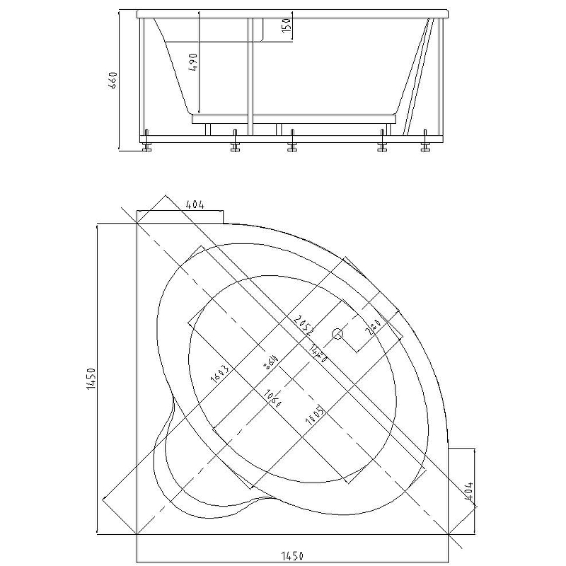 Современный материал, акрил, который использован для изготовления представленной модели угловой ванны 145х145 Ума, обладает прекрасными технологическими, экологическими, гигиеническими и эстетическими показателями. Он легко очищается самыми простыми бытовыми средствами, не меняет цвет, не подвержен ржавчине и не царапается. А при необходимости легко чинится и восстанавливается.