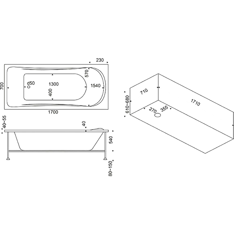 Акриловая ванна Bas (Бас) Атланта 170x70, с каркасом