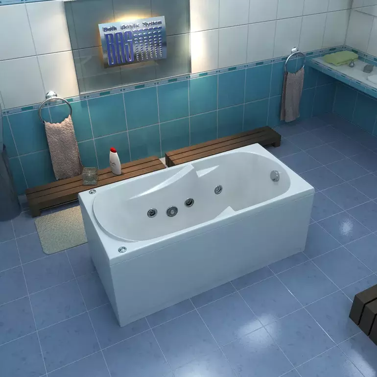 - Ванна изготовлена из литьевого акрила с усиленным армирующим слоем по всей внутренней поверхности, цвет - белый.