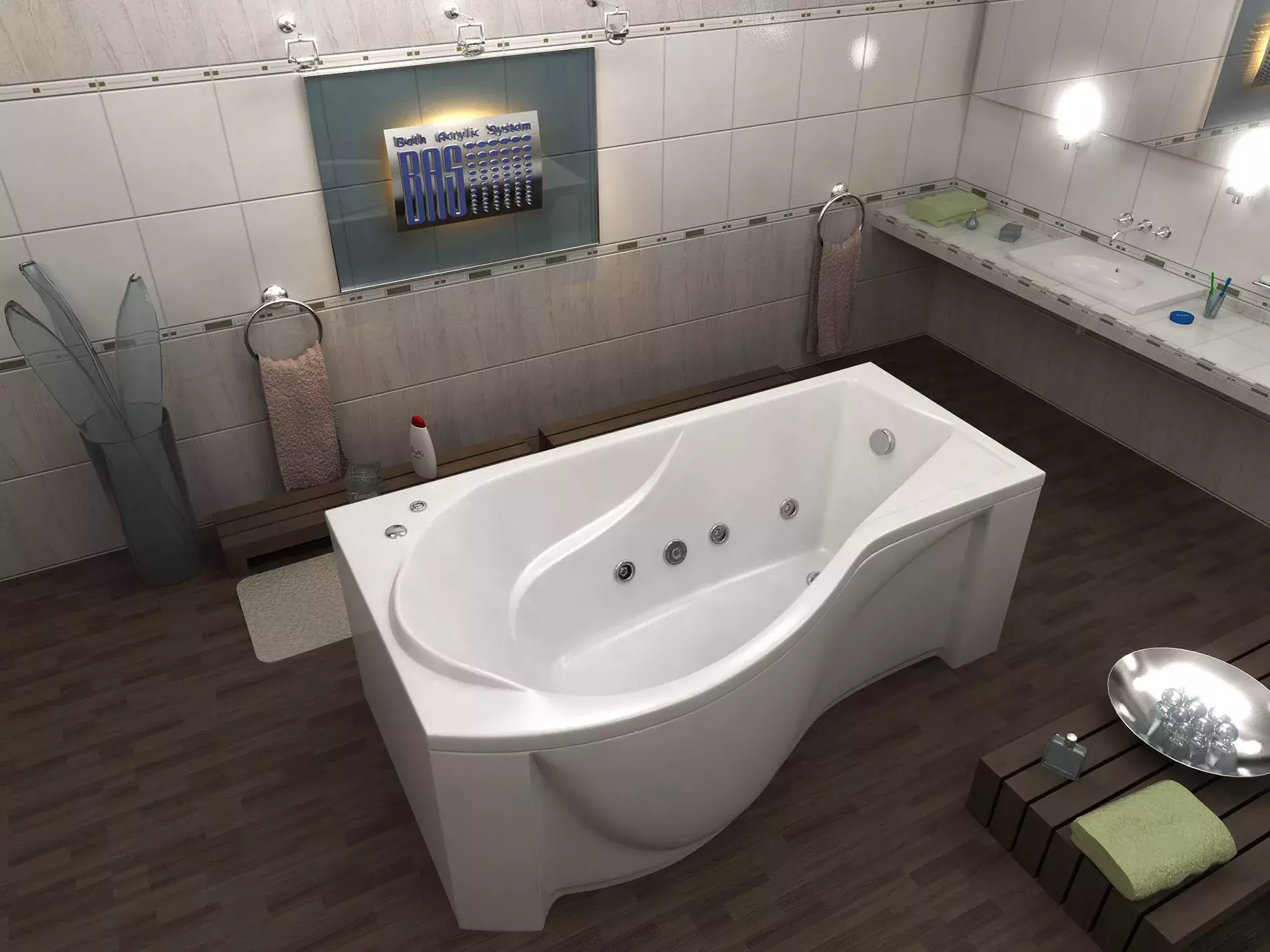 - Ванна изготовлена из литьевого акрила с усиленным армирующим слоем по всей внутренней поверхности, цвет - белый.