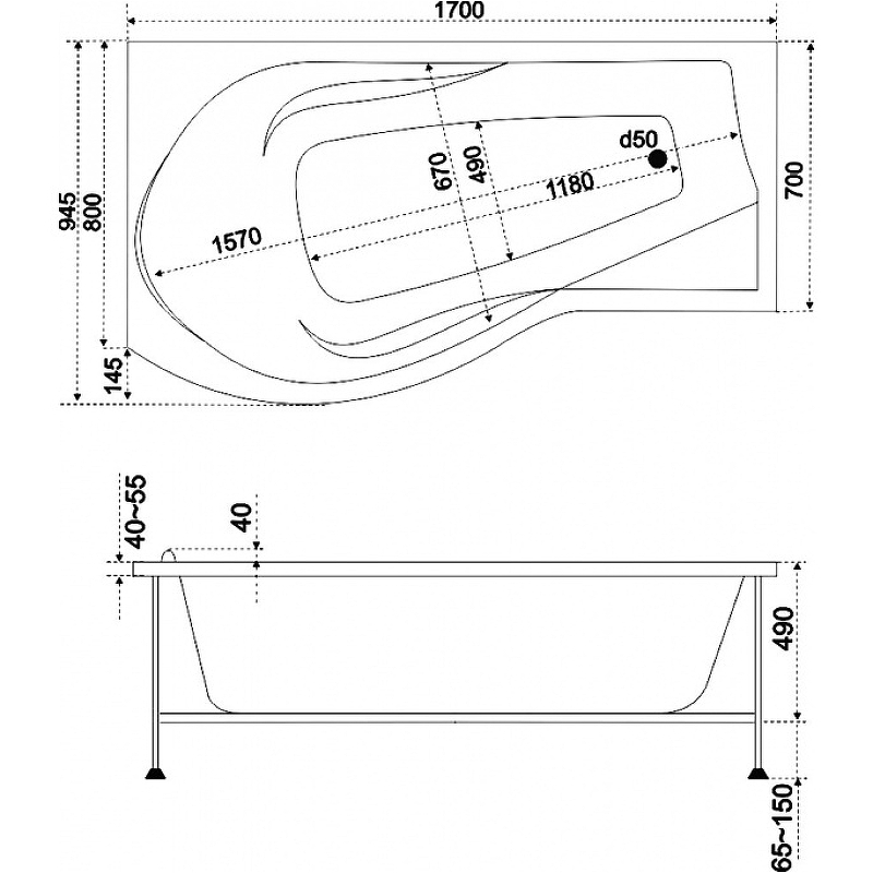 - Ванна имеет стильный и привлекательный дизайн за счет плавных обтекаемых линий и изгибов с гладкой белоснежной поверхностью. Дополнит любую ванную комнату в современном стиле и подарит комфорт и эстетическое наслаждение ее владельцу.