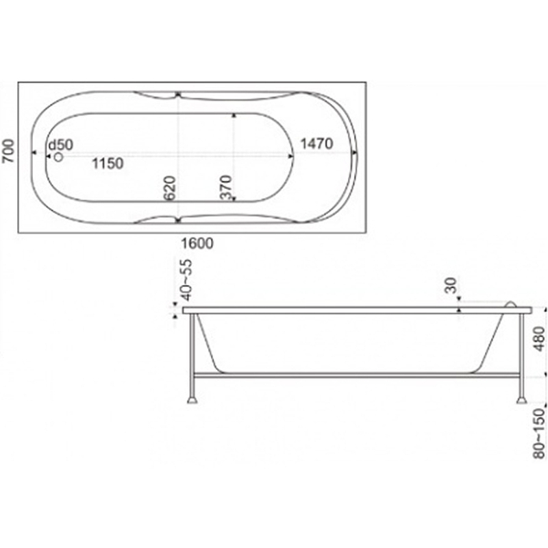 Акриловая ванна Bas (Бас) Мальдива 160x70, с каркасом
