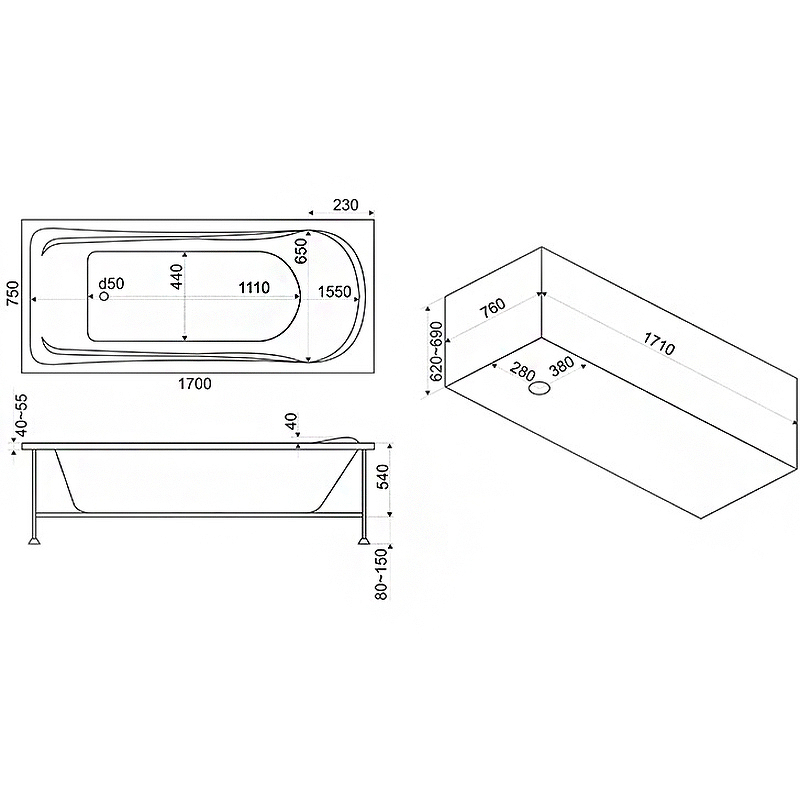 Акриловая ванна Bas (Бас) Мальта 170x75, с каркасом