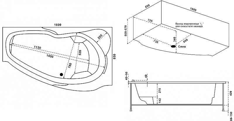 - Ванна имеет стильный и привлекательный дизайн за счет плавных обтекаемых линий и изгибов с гладкой белоснежной поверхностью. Дополнит любую ванную комнату в современном стиле и подарит комфорт и эстетическое наслаждение ее владельцу.