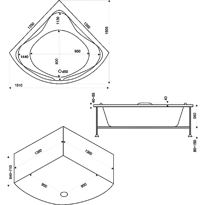 - Каркас: стальной металлический профиль с порошковым напылением, сечение 25х25 мм. Обеспечивает дополнительную прочность и жёсткость. Ножки регулируются по высоте: +/- 7 см (8 - 15 см).