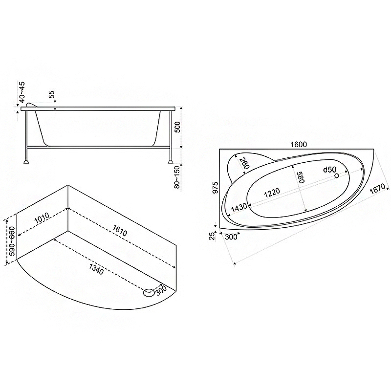 - Каркас: стальной металлический профиль с порошковым напылением, сечение 25х25 мм. Обеспечивает дополнительную прочность и жёсткость. Ножки регулируются по высоте: +/- 7 см (8 - 15 см).