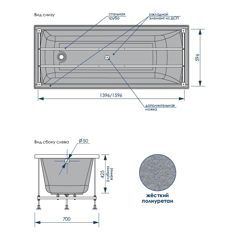 Акриловая ванна Loranto MILTON (Лоранто Милтон) 150х70 CS00063081, с каркасом