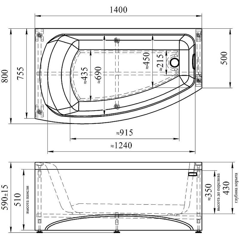 Акриловая ванна "Мэри" 140х80 – миниатюрная асимметричная модель. Прекрасно впишется в ограниченное пространство ванной комнаты. Одна сторона ванны заужена, что позволяет компактно разместить унитаз или раковину.
