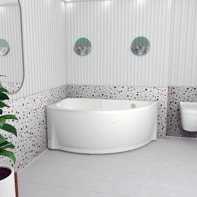 Акриловая ванна "Модерна" 160х100 – угловая модель с оптимальными размерами и широким внутренним пространством овальной формы. За счет плавных линий визуально смотрится аккуратно и компактно, отлично впишется в современный интерьер ванной комнаты. Встроенное сиденье – еще один плюс этой ванны. Расширенная центральная часть позволяет с удобством разместиться людям крупного телосложения. Скошенный угол освобождает место для раковины, стиральной машины или шкафа и улучшает подход к ним, поэтому угловая ванна 160 см в длину рекомендуется всем, кто хочет организовать функциональную и эргономичную ванную комнату.