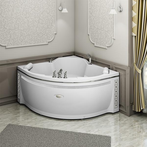 Акриловая ванна "Сорренто" 140х140 отличается практичной формой и анатомическим внутренним строением. Благодаря угловой конструкции изделие компактно размещается в ванной комнате любой планировки, выглядит очень элегантно и позволяет вместить сразу двоих. Занять удобное положение в ванне помогают наклонные спинки, эргономичные съемные подголовники и отформованные выступы внутри чаши, которые играют роль подлокотников для рук. Широкие возможности декоративной отделки позволяют купить угловую ванну с уникальным дизайном.