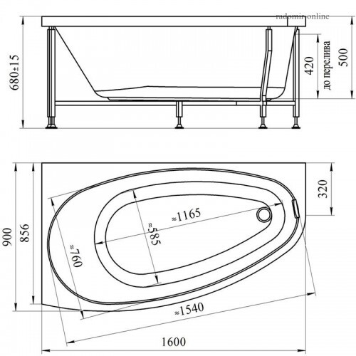 Цена указана за: Чаша ванны на каркасе.
