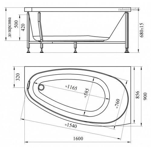 Акриловая ванна "Орсини" 160х90 – угловая модель с плавными очертаниями и сглаженными линиями дна. Внутреннее пространство ванны имеет каплевидную форму, что одновременно обеспечивает удобство внутри и экономит место снаружи.