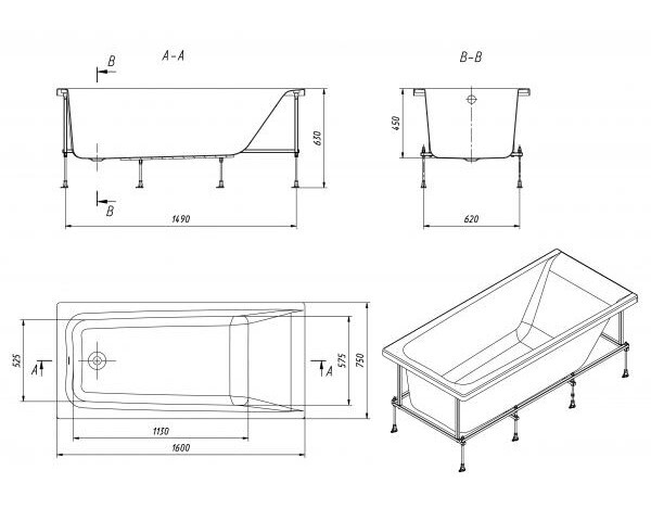Акриловая ванна Roca Elba (Рока Эльба) 160x75, 248619000