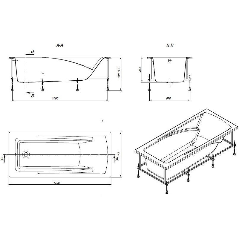 Каркас, система слив-перелив входят в монтажный комплект, который приобретается отдельно.