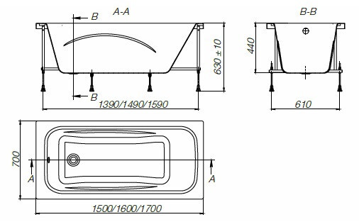 Каркас, система слив-перелив входят в монтажный комплект, который приобретается отдельно.
