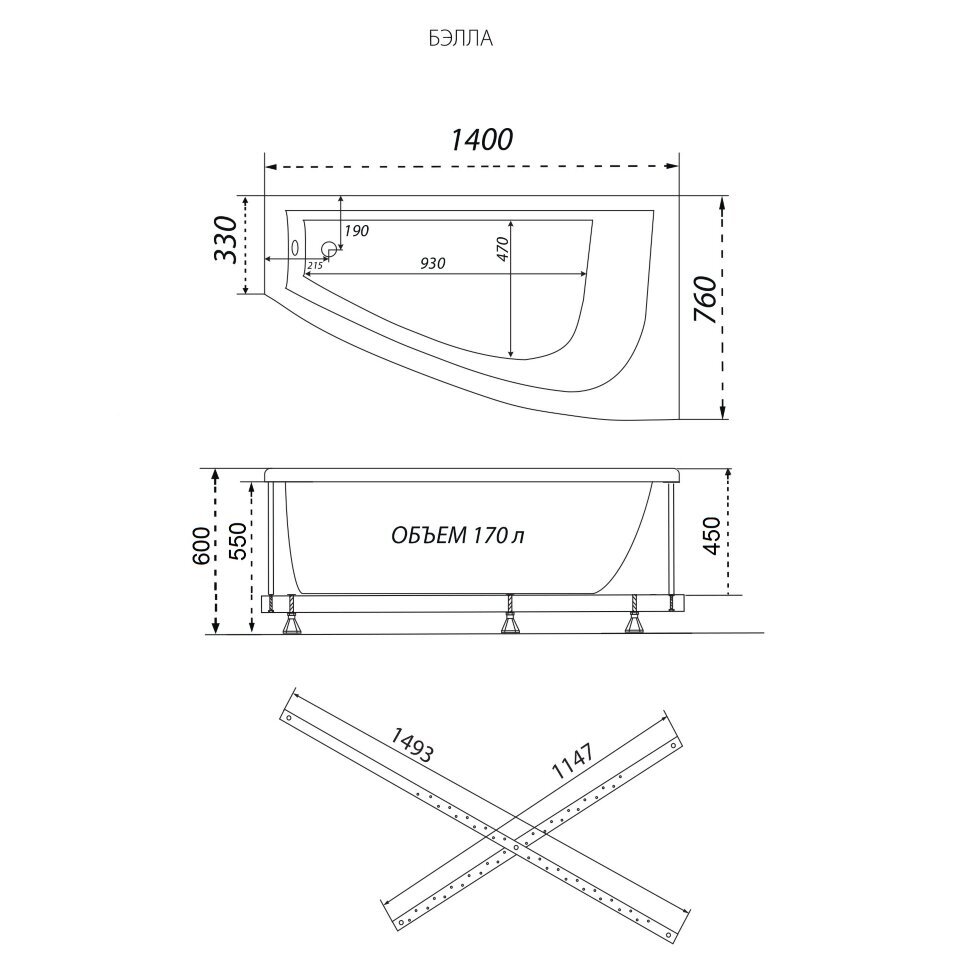 - Ванна дополнительно укреплена по бокам и на дне. Это делает конструкцию жесткой и надежной.