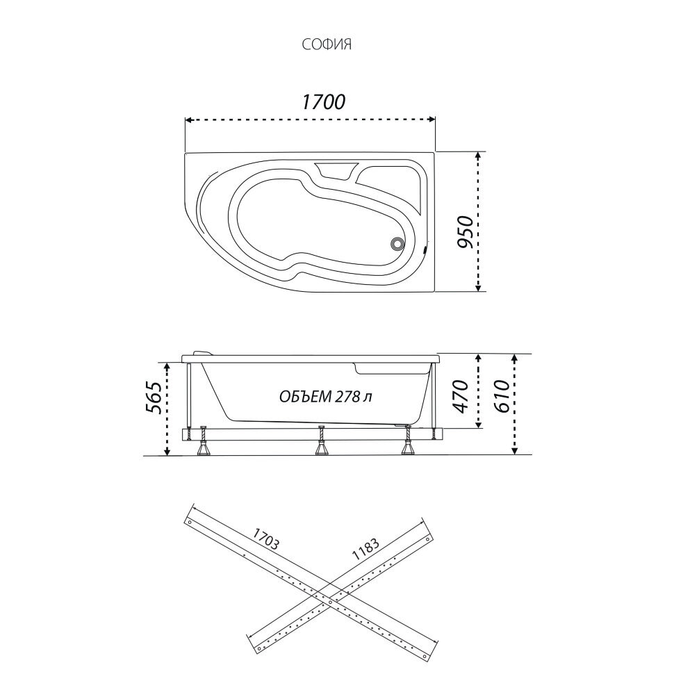 - Прочный металлический каркас придаст ванне устойчивость и не даст прогибаться.