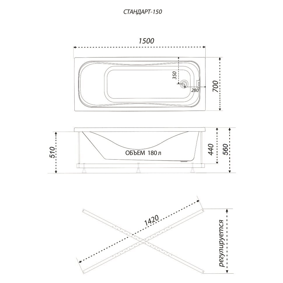 - Ванна дополнительно укреплена по бокам и на дне. Это делает конструкцию жесткой и надежной.