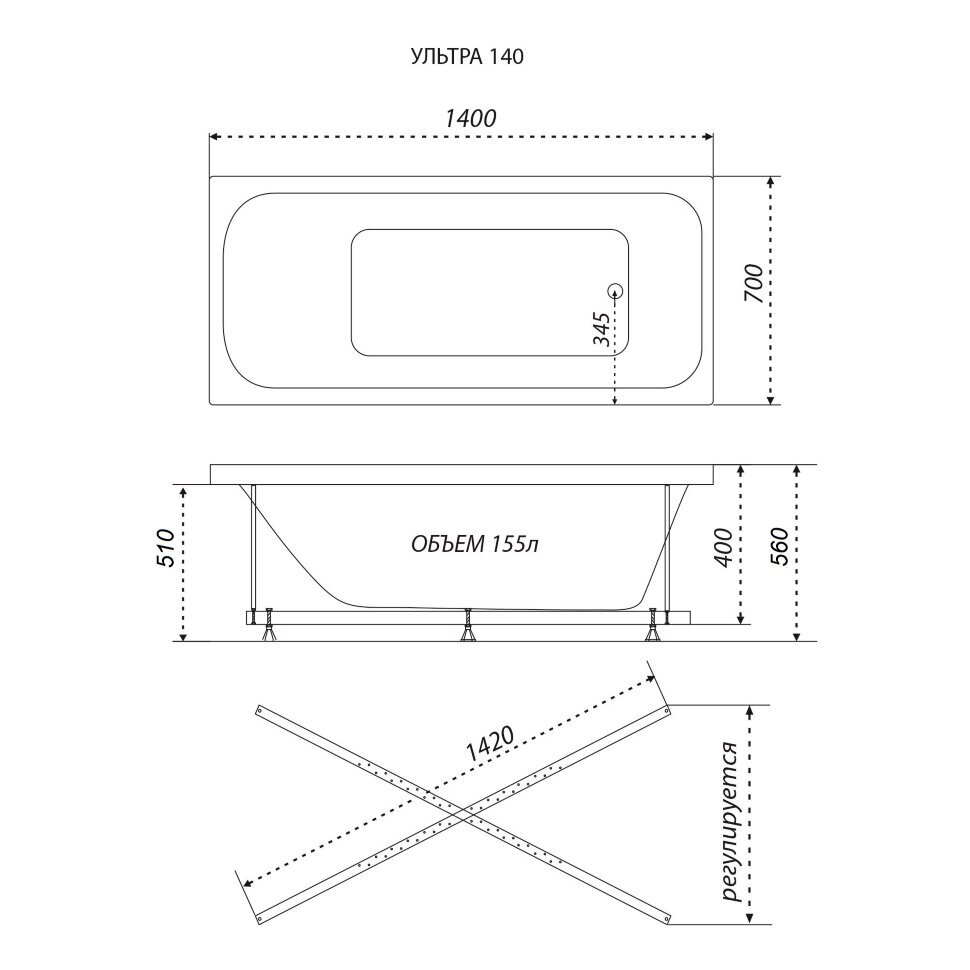 - Ванна дополнительно укреплена по бокам и на дне. Это делает конструкцию жесткой и надежной.