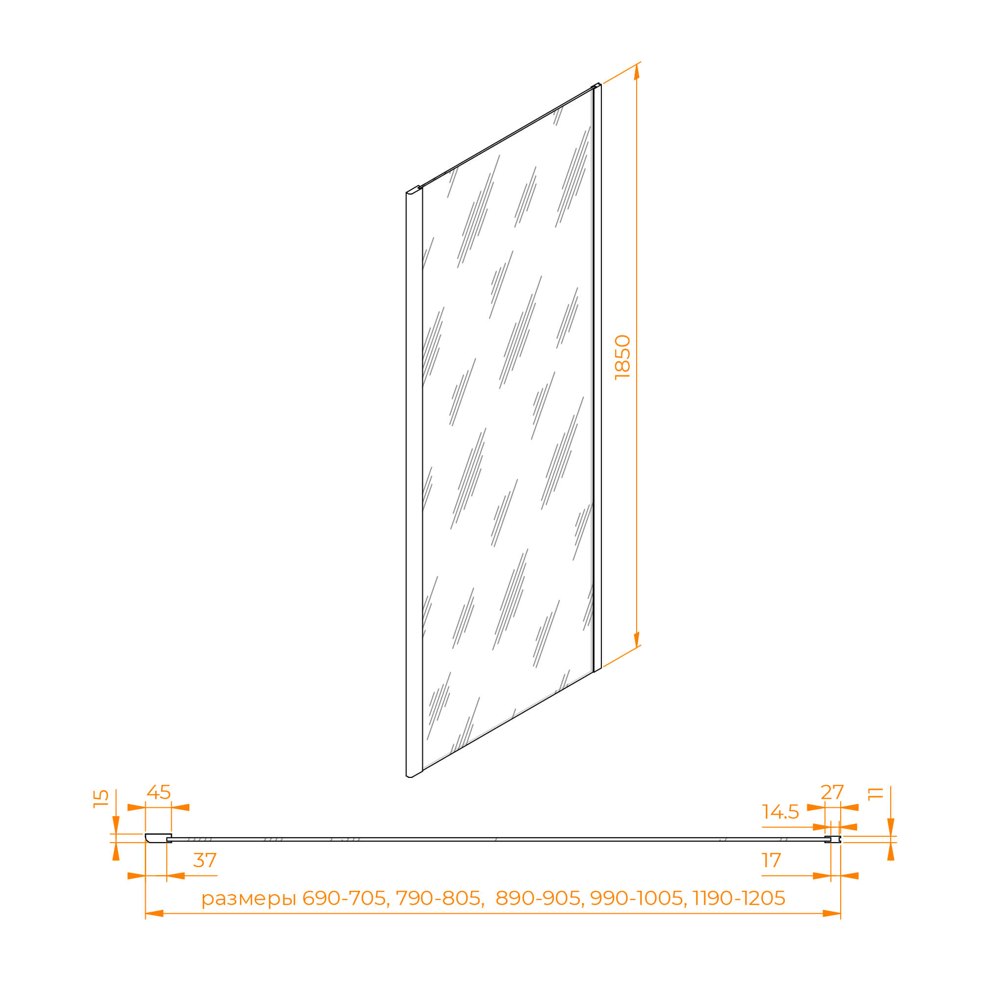 Боковая панель совместима с моделями душевых дверей высотой 1850 мм.