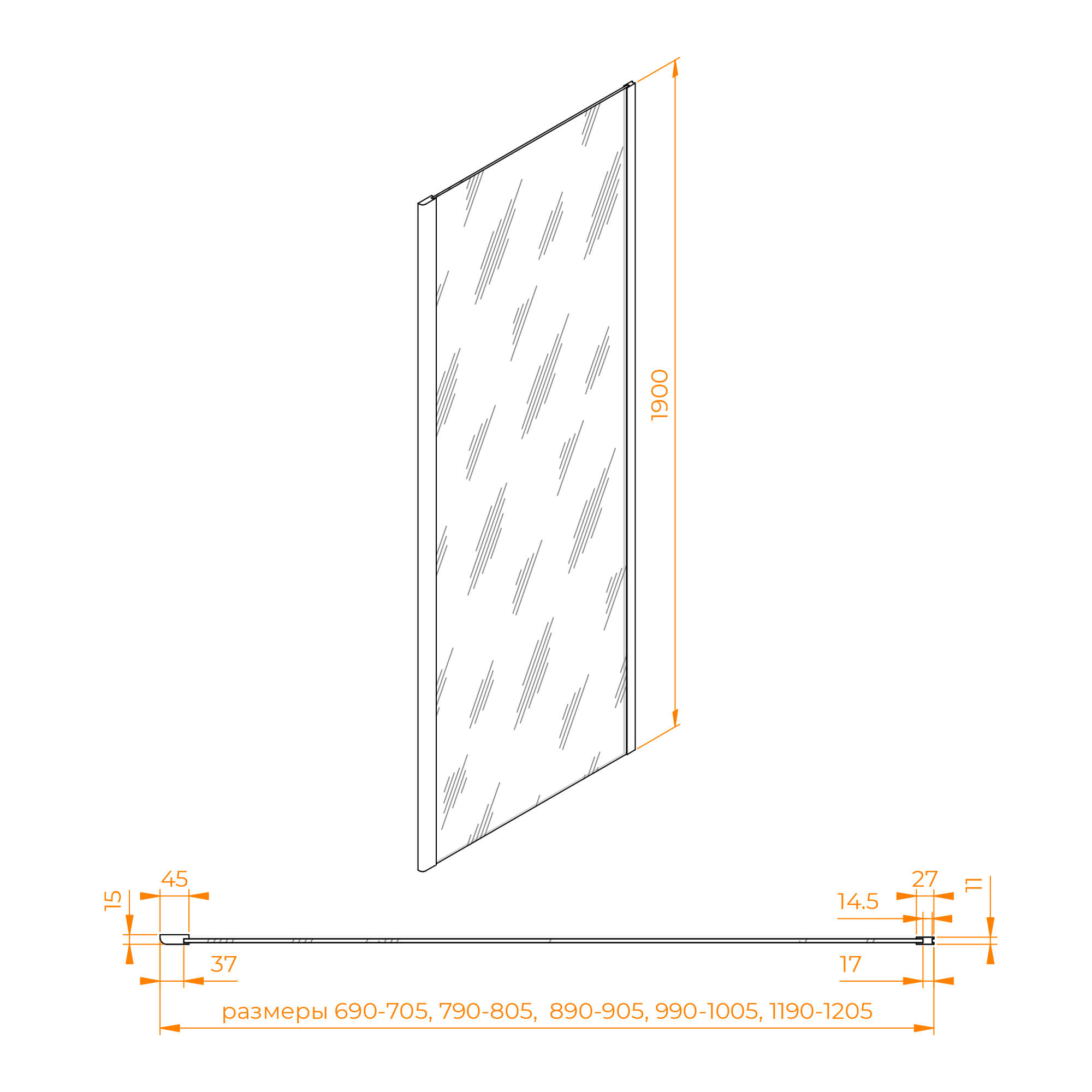 Боковая панель совместима с моделями душевых дверей высотой 1900 мм.