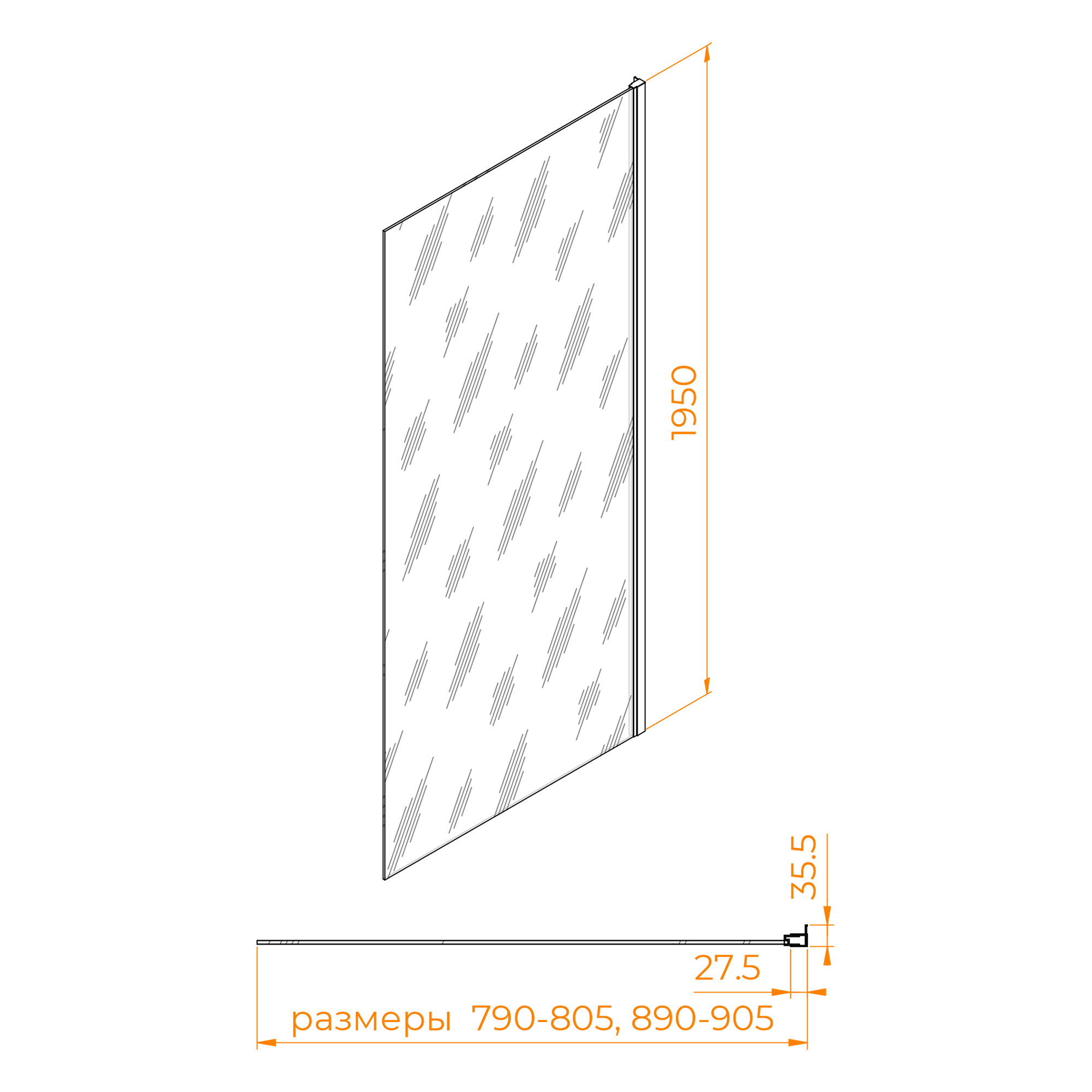 Боковая панель с пристенным профилем, оснащена высокопрочным закалённым стеклом толщиной 6 мм и усиленным профилем для соединения в конфигурацию П-образного или Г-образного угла с душевыми дверьми RGW CL-13, которые имеют цвет профиля и стекло в аналогичном исполнении