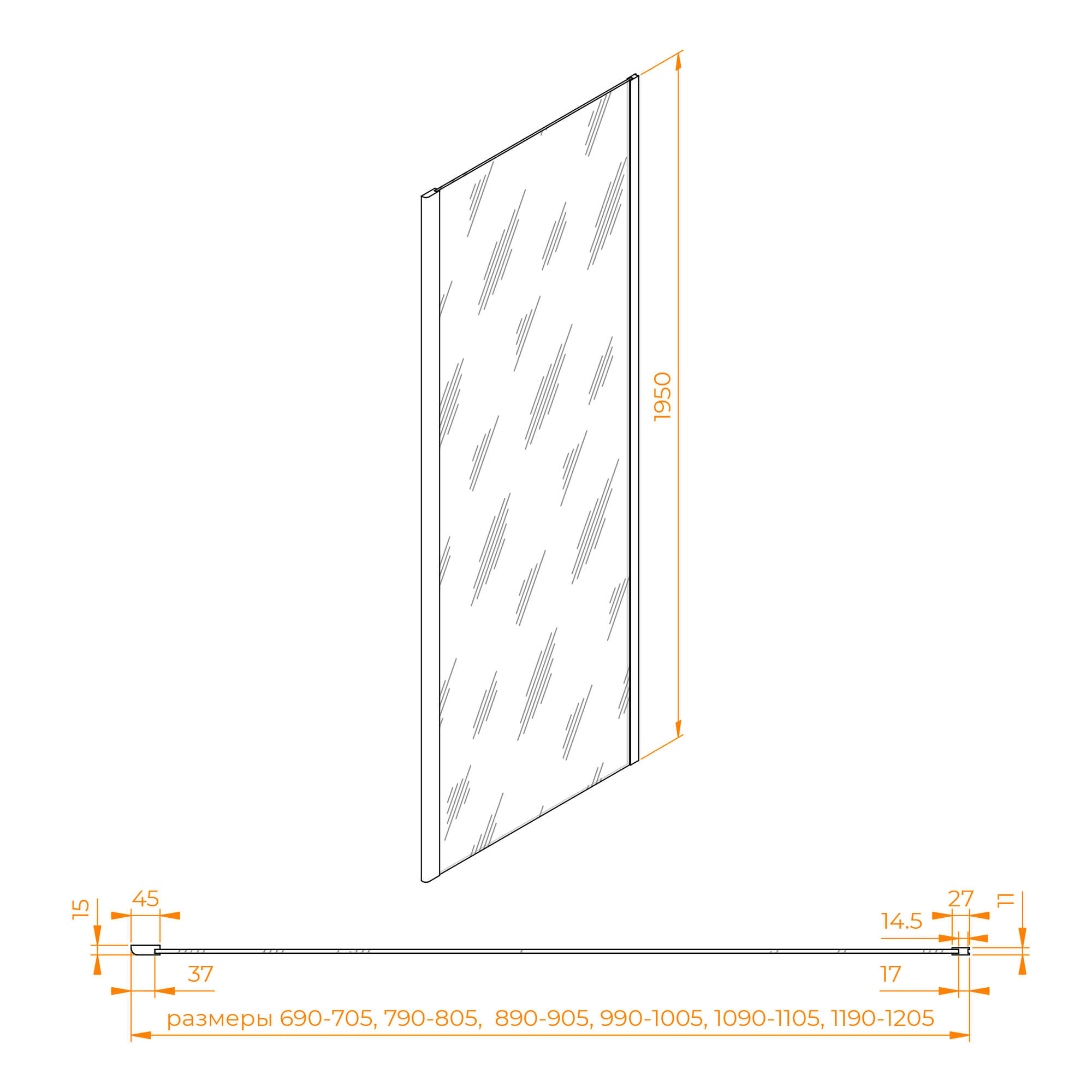 Боковая панель совместима с моделями душевых дверей высотой 1950 мм.