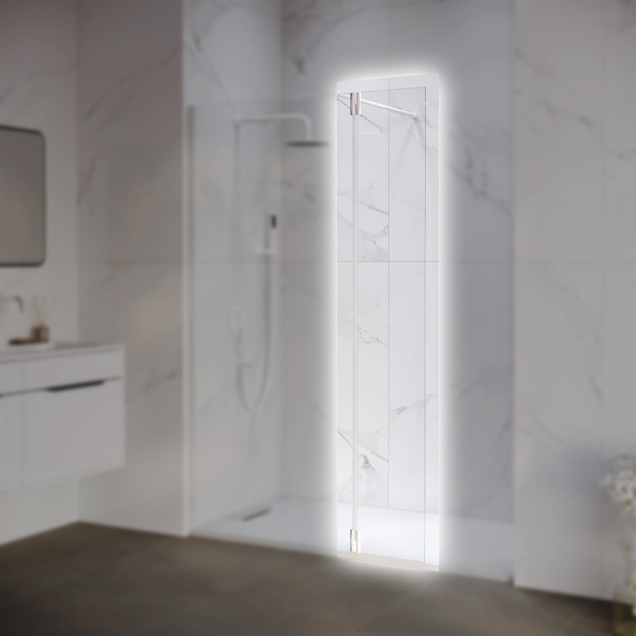 Высокопрочное закалённое приставное стекло 8 мм (z-071) комплектуется стальными петлями для крепления к стеклу перегородки. Петли оснащены герметичным поворотным механизмом с маятниковой системой, что позволяет открывать стекло наружу для удобного доступа в душевое пространство или закрывать его внутрь, частично ограничивая вход для предотвращения брызг во время водных процедур.