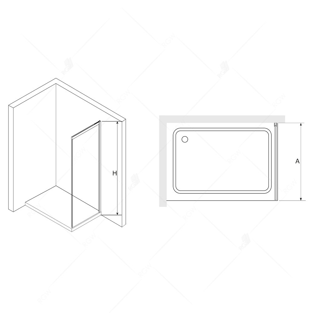 Боковая панель с пристенным профилем, оснащена высокопрочным закалённым стеклом толщиной 6 мм и усиленным профилем для соединения в конфигурацию Г-образного угла с душевыми дверьми RGW LE-12, которые имеют цвет профиля и стекло в аналогичном исполнении.