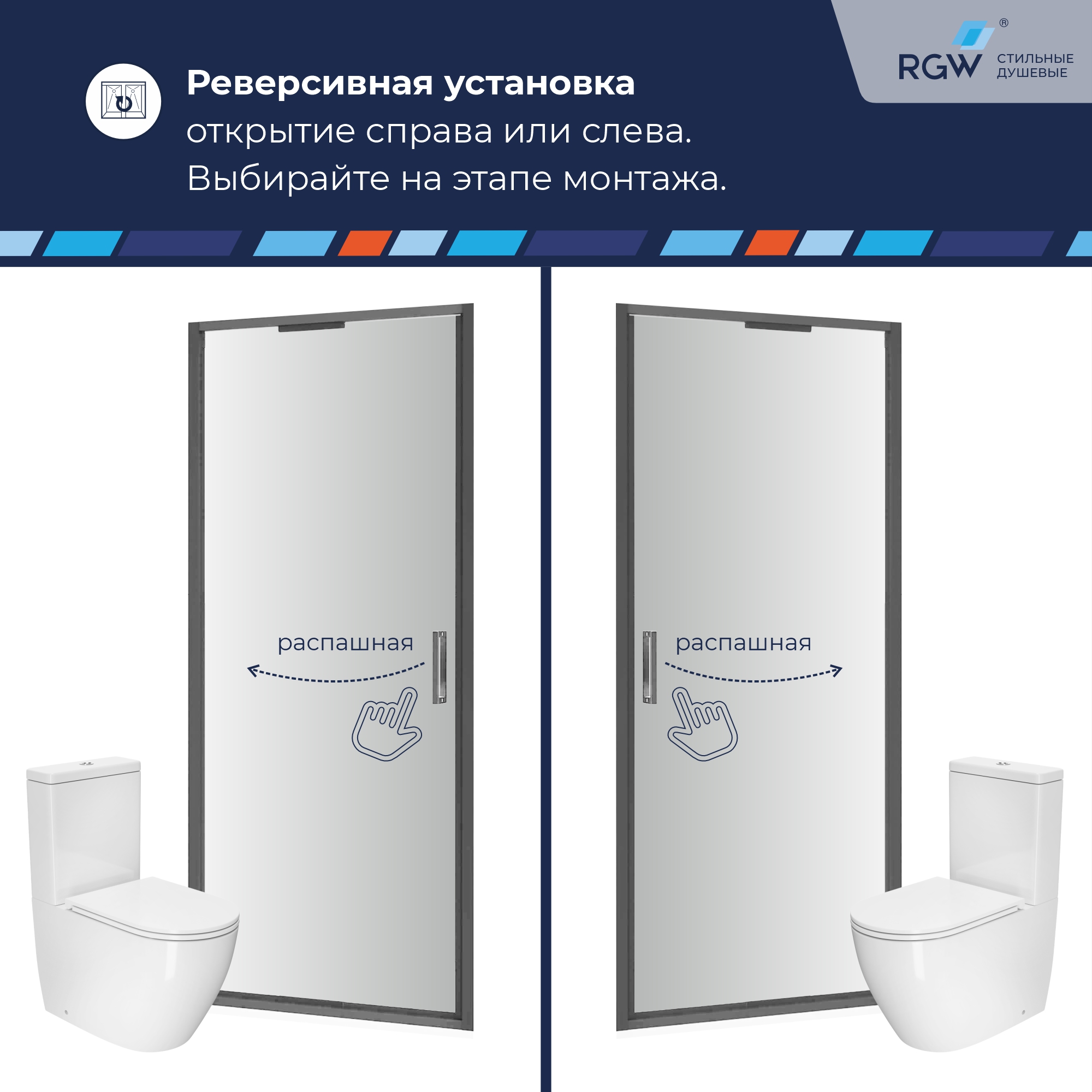 Душевая дверь из стекла, распашная с системой Pull&Slide в нишу RGW SV-05 - серая