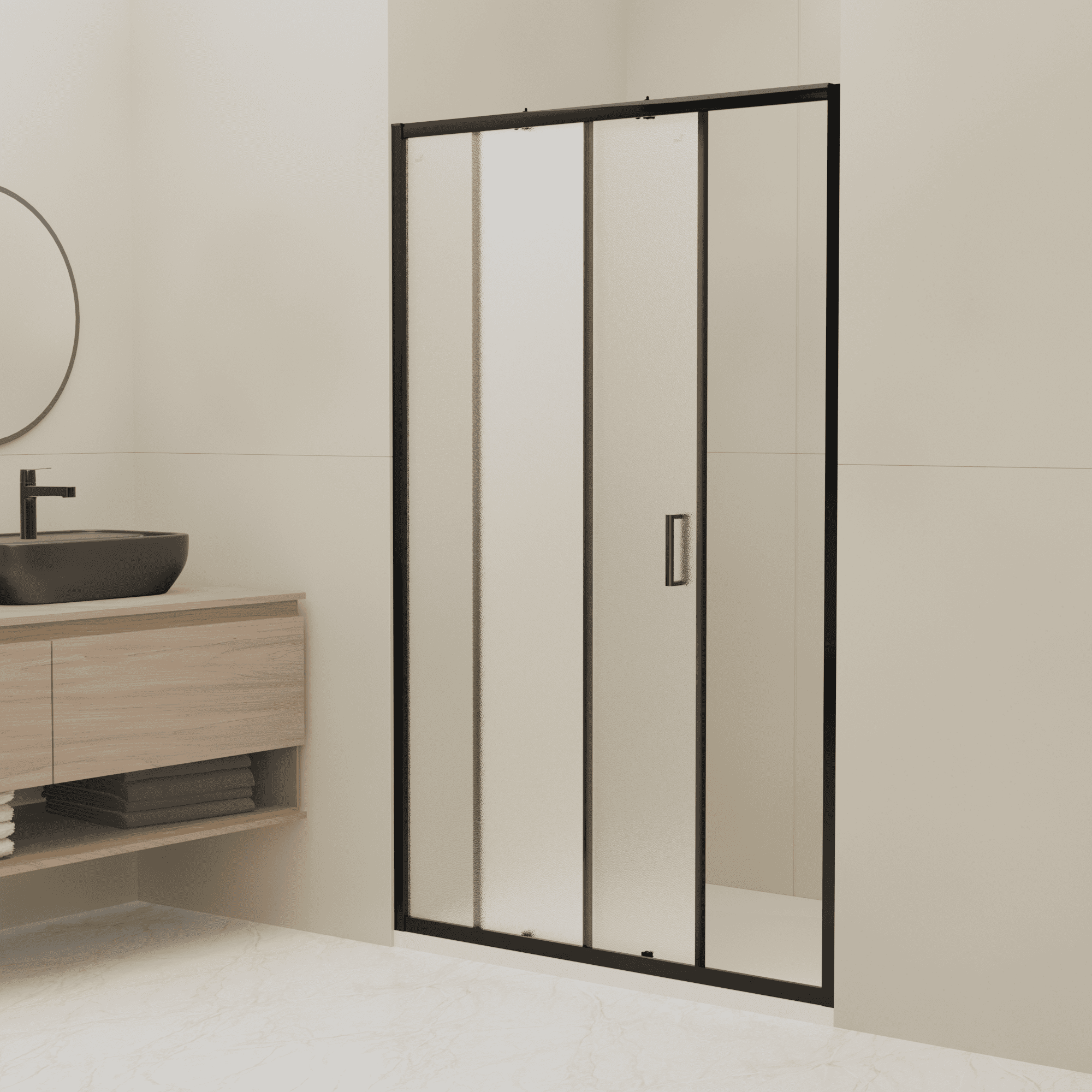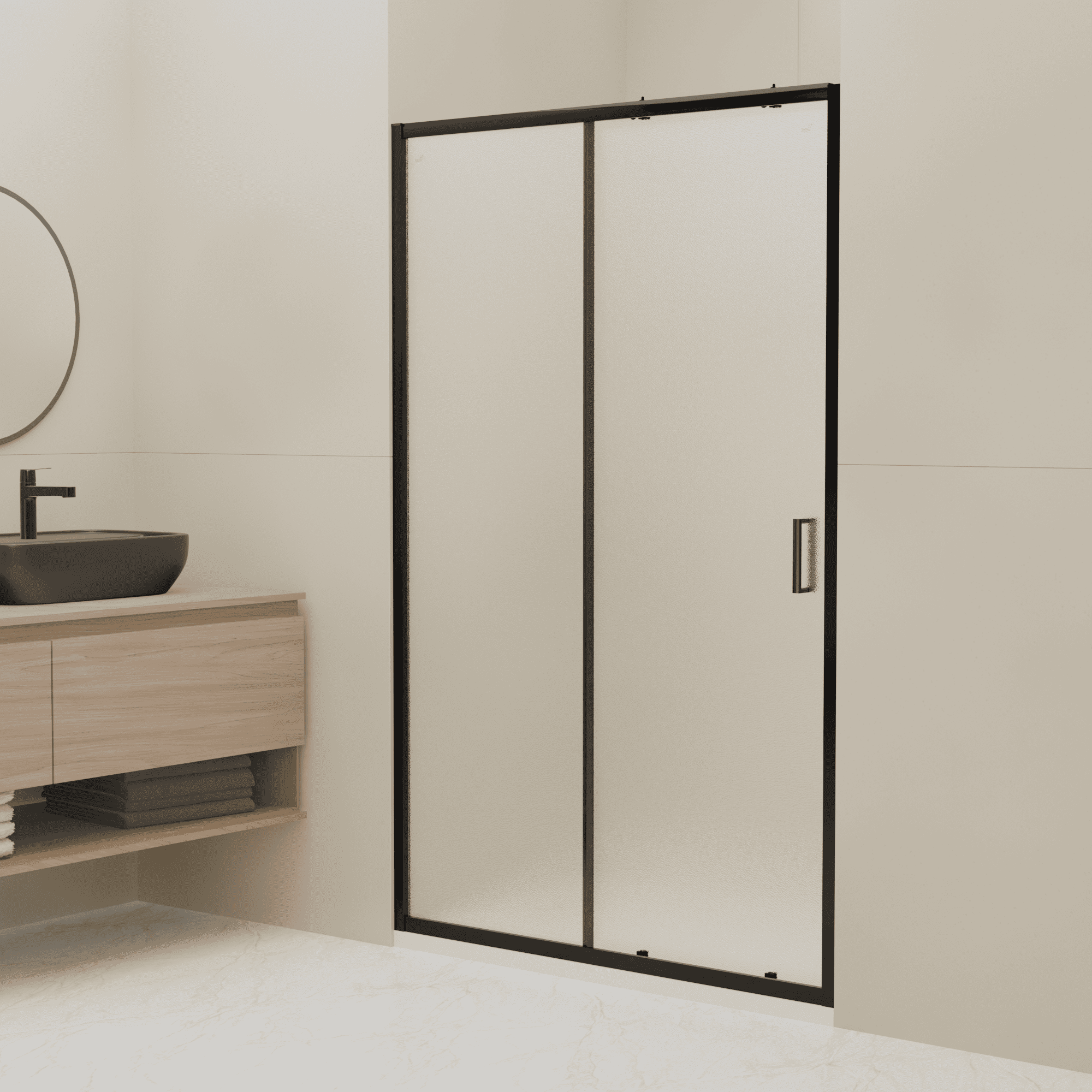 ✔ стекло текстурное CORA – Текстурное стекло создаёт эффект размытия силуэта, придавая интерьеру ванной комнаты уникальность и изысканность.