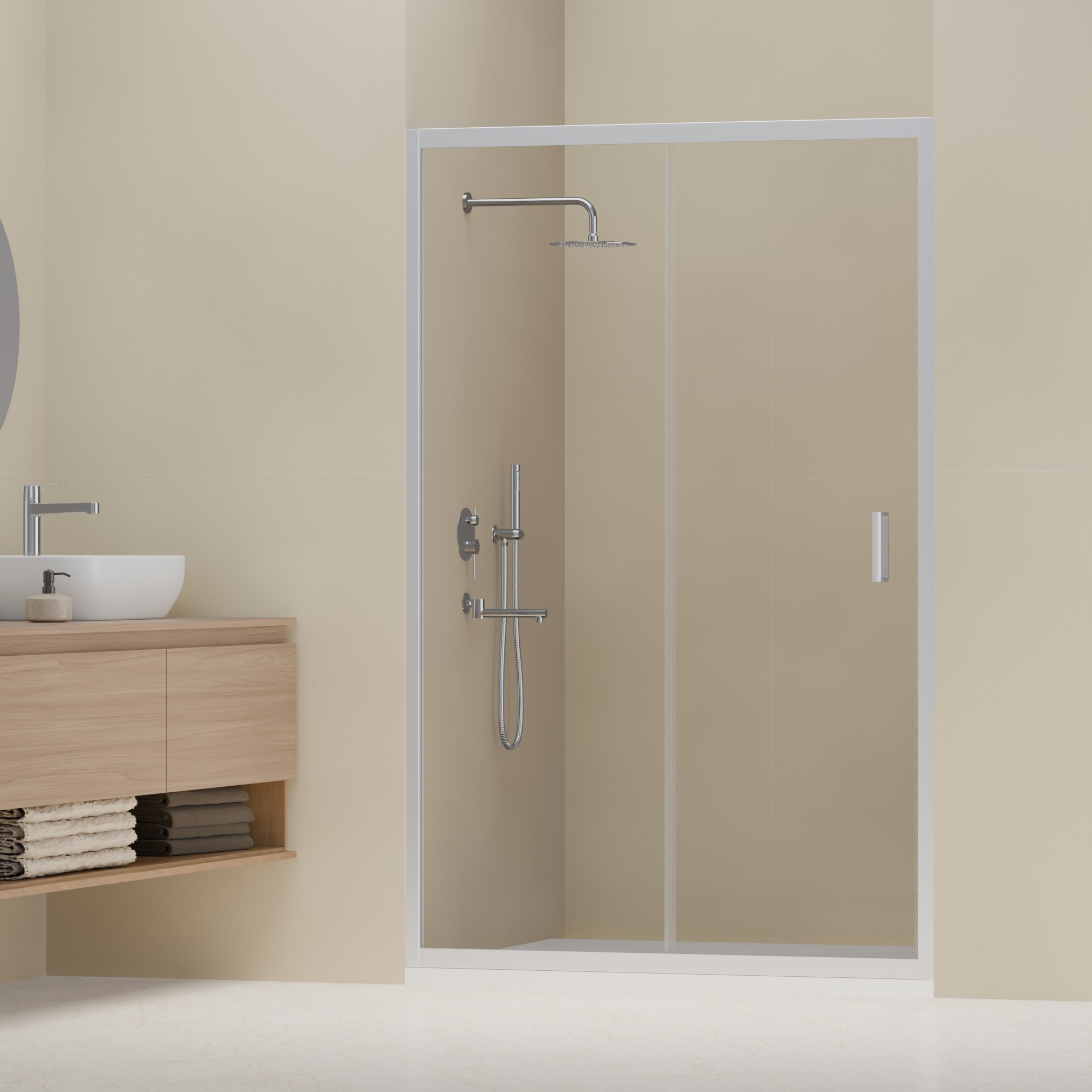 Конструкция дверей - раздвижные, что позволяет сэкономить место в ванной комнате и легко управлять дверью. Открывайте и закрывайте дверь с помощью легкого и плавного движения.