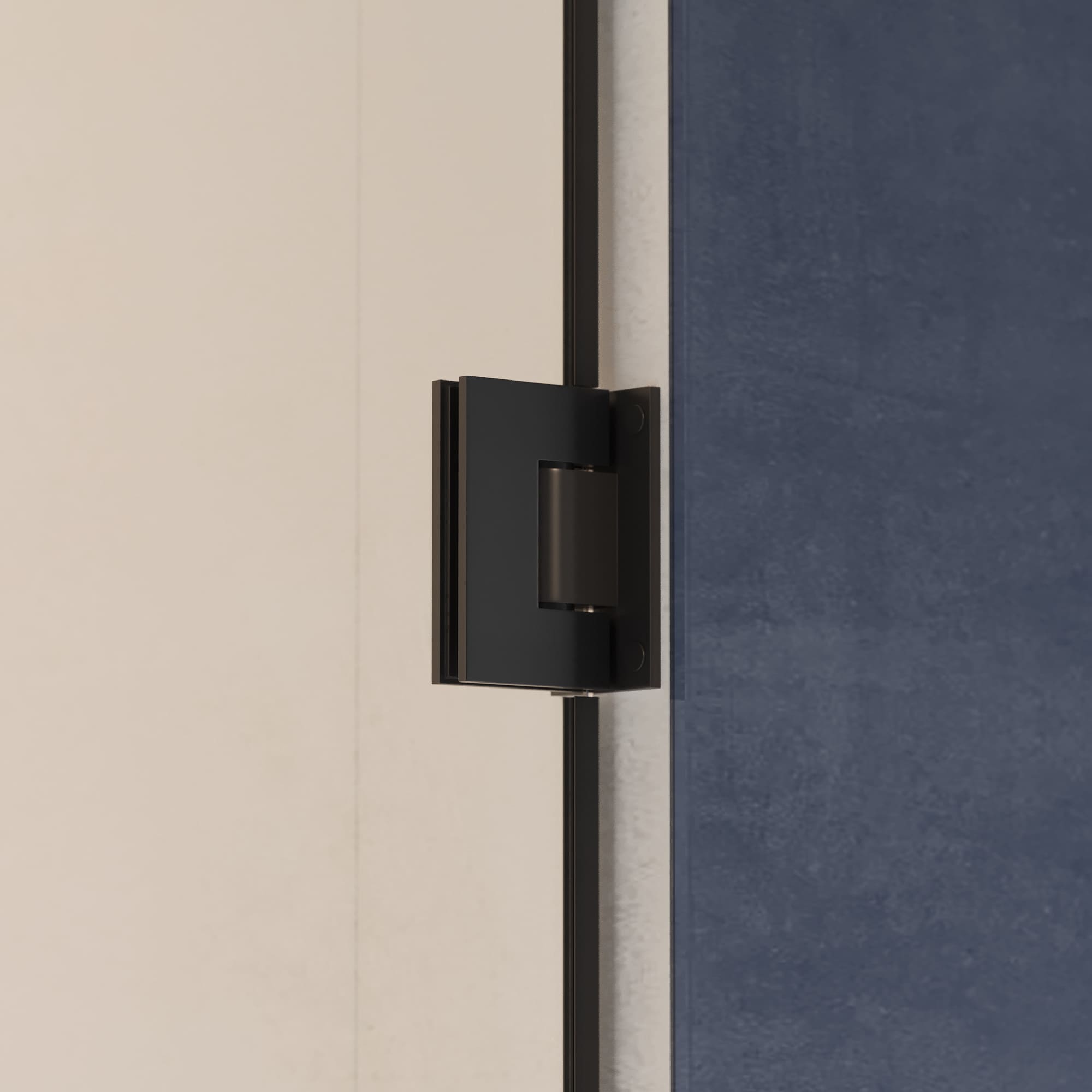 Подвижное полотно стекла крепится усиленными коннекторными петлями непосредственно к стене. Петли горизонтальные стеновые (коннекторные) под вырез в закалённом стекле. Стеновые петли из нержавеющей стали обеспечивают плавный и надёжный маятниковый ход створки, что позволяет на этапе монтажа выбрать открытие двери только вовнутрь или только наружу. Если магнитный замок не установлен, то петли позволяют открывать дверь в обе стороны. Усиленные петли гарантируют прочное крепление стекла и исключают люфты. Именно у этой модели стальные петли водонепроницаемые — они гарантируют отсутствие протечек. Петли можно установить как на левую сторону стены, так и на правую.