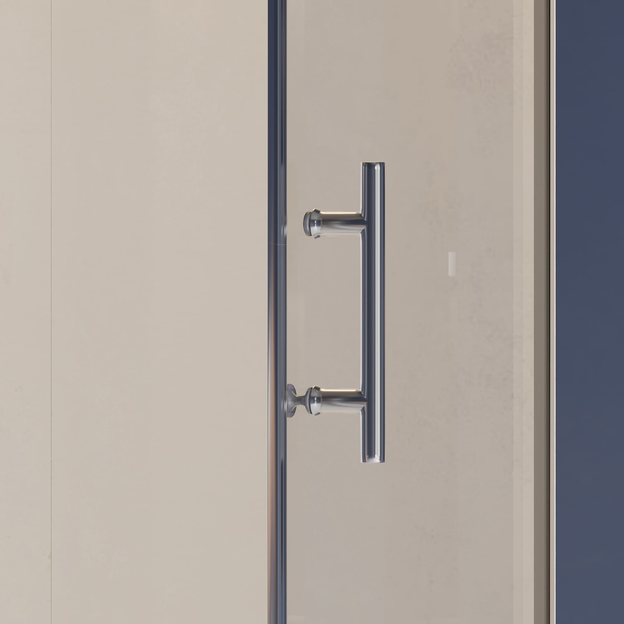 Хромированный цвет профиля этой душевой двери придает нотку современности и дополняет любой интерьер ванной комнаты. Водонепроницаемые стальные петли обеспечивают долговечность и надежность, предотвращая утечку воды и обеспечивая сухую и комфортную среду в ванной комнате.