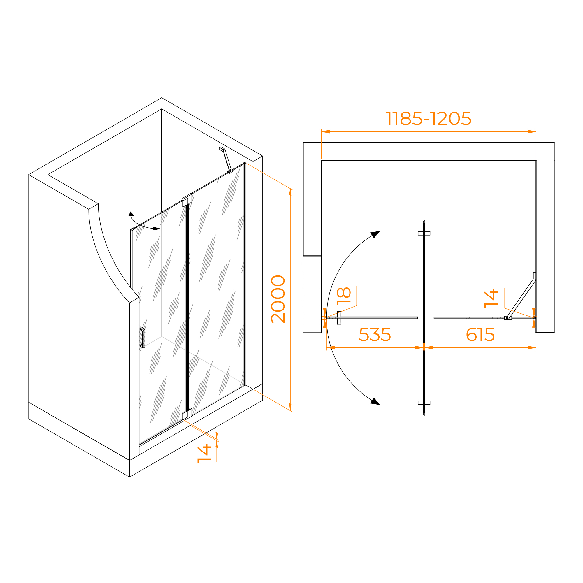 Душевая распашная маятниковая дверь RGW HO-014 – реверсивная установка, монтаж на любую сторону открытия двери. Возможна комплектация боковой панелью для образования угла.