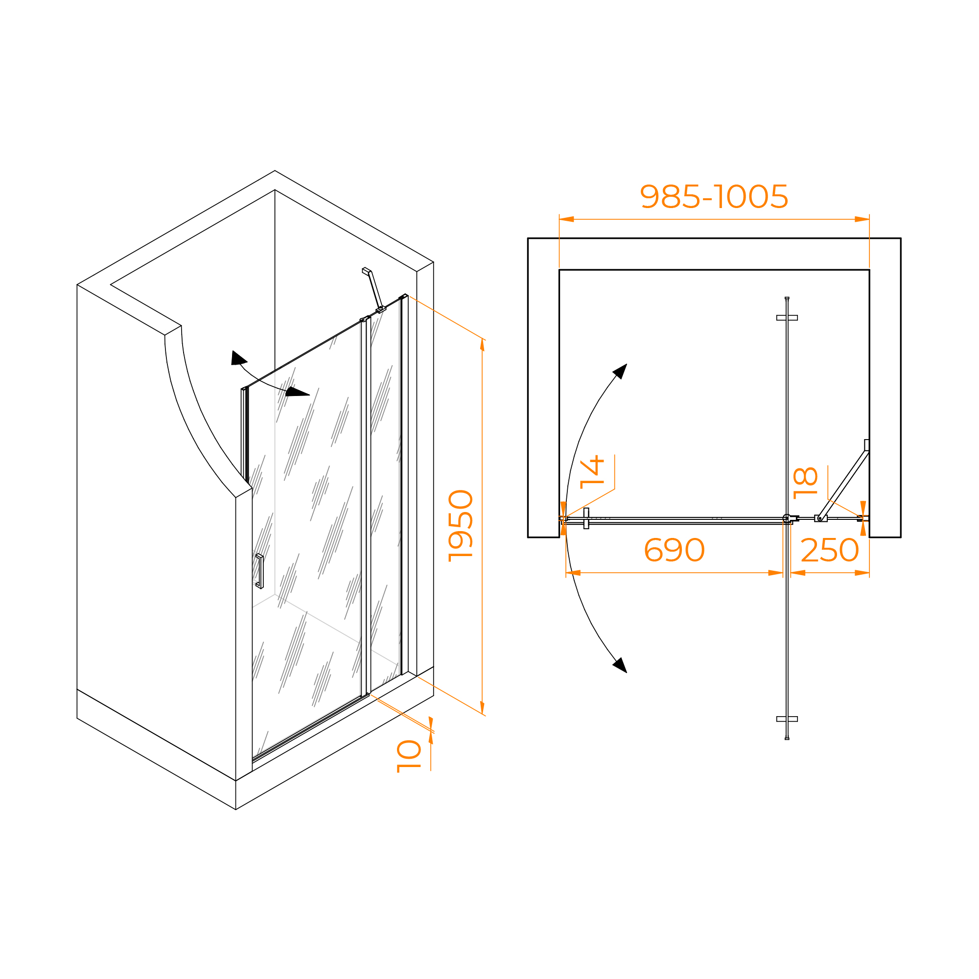 Элегантные стеклянные двери с пристенными профилями придают ванной комнате изысканность и строгость. Модели оснащены маятниковой петлёй, с защитой от провисания и подъёмом двери при открытии. Такой системой будет особенно удобно пользоваться если дверь установлена на плитку с встроенным трапом. Изделия оснащены Распашные двери открываются как наружу, так и внутрь, что обеспечит максимальный комфорт в процессе использования душевого пространства.