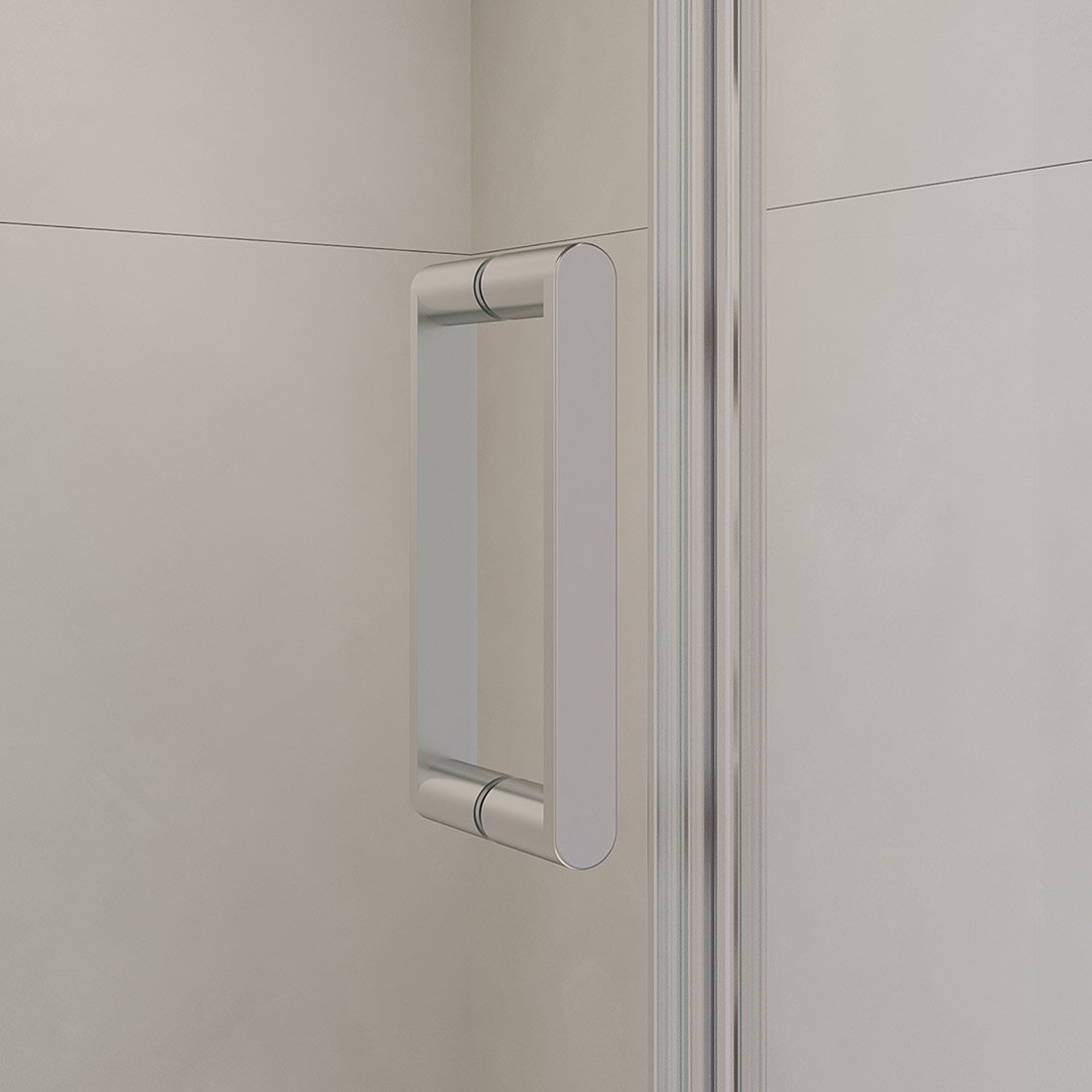 Душевая дверь изготовлена из стекла толщиной 6 мм, обеспечивающего превосходную прочность и долговечность. Прозрачный цвет стекла создает современный и открытый вид, а хромированный цвет профиля добавляет нотку элегантности. Общая высота двери составляет 1950 мм, что делает ее подходящей для большинства стандартных душевых кабин.