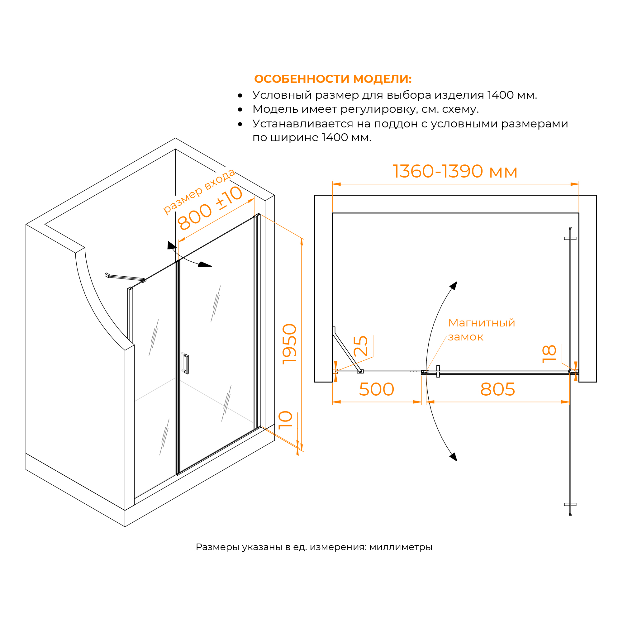Душевая дверь RGW LE-008 - качественное и стильное дополнение любой ванной комнаты. Благодаря элегантному дизайну и прочной конструкции он обязательно улучшит общий вид и функциональность вашего душевого пространства.
