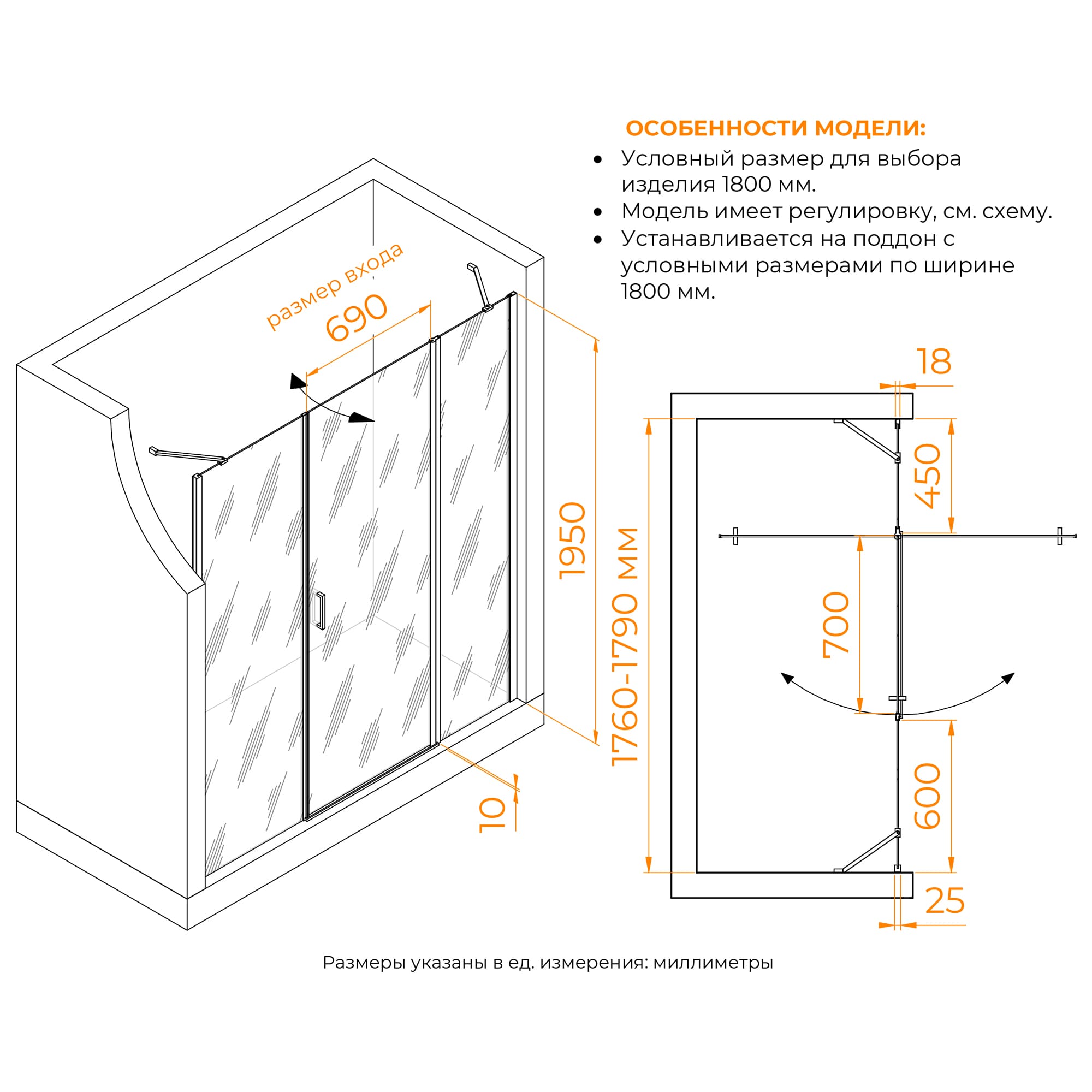 Распашные двери - это про свободу и легкость. Душевая дверь распашная. Петля имеет функцию подъема двери. Состоит из душевой двери RGW LE-004 и боковой панели RGW Z-09. Установка боковой панели со стороны открытия двери. Универсальная установка модели. В комплекте нижняя пороговая планка. Трап или поддон приобретается отдельно.