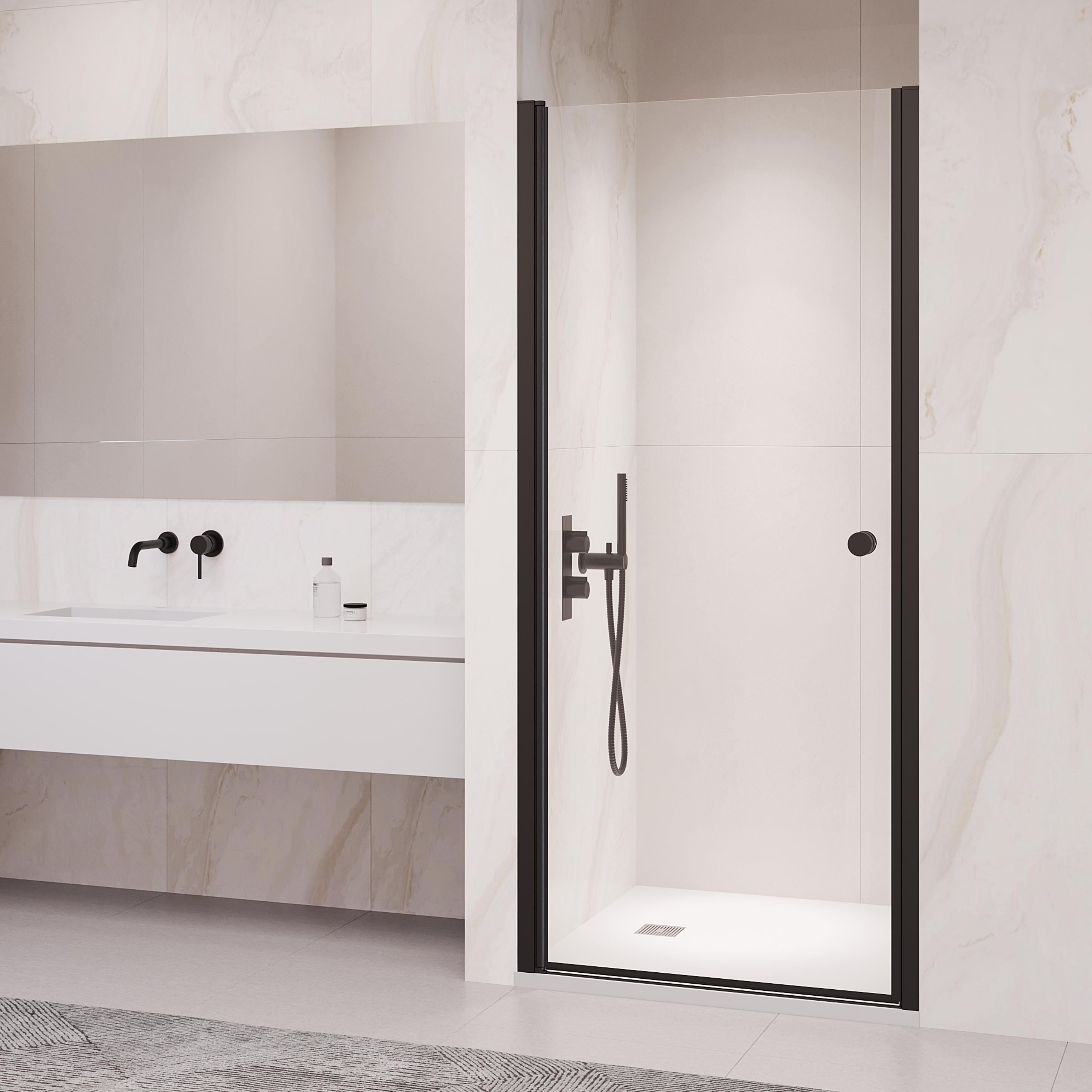 Регулируемый профиль душевой двери позволяет легко установить и настроить ее в соответствии с вашим конкретным душевым пространством. Роликовые подшипники обеспечивают плавную и бесшумную работу двери, повышая общую функциональность и удобство для пользователя.