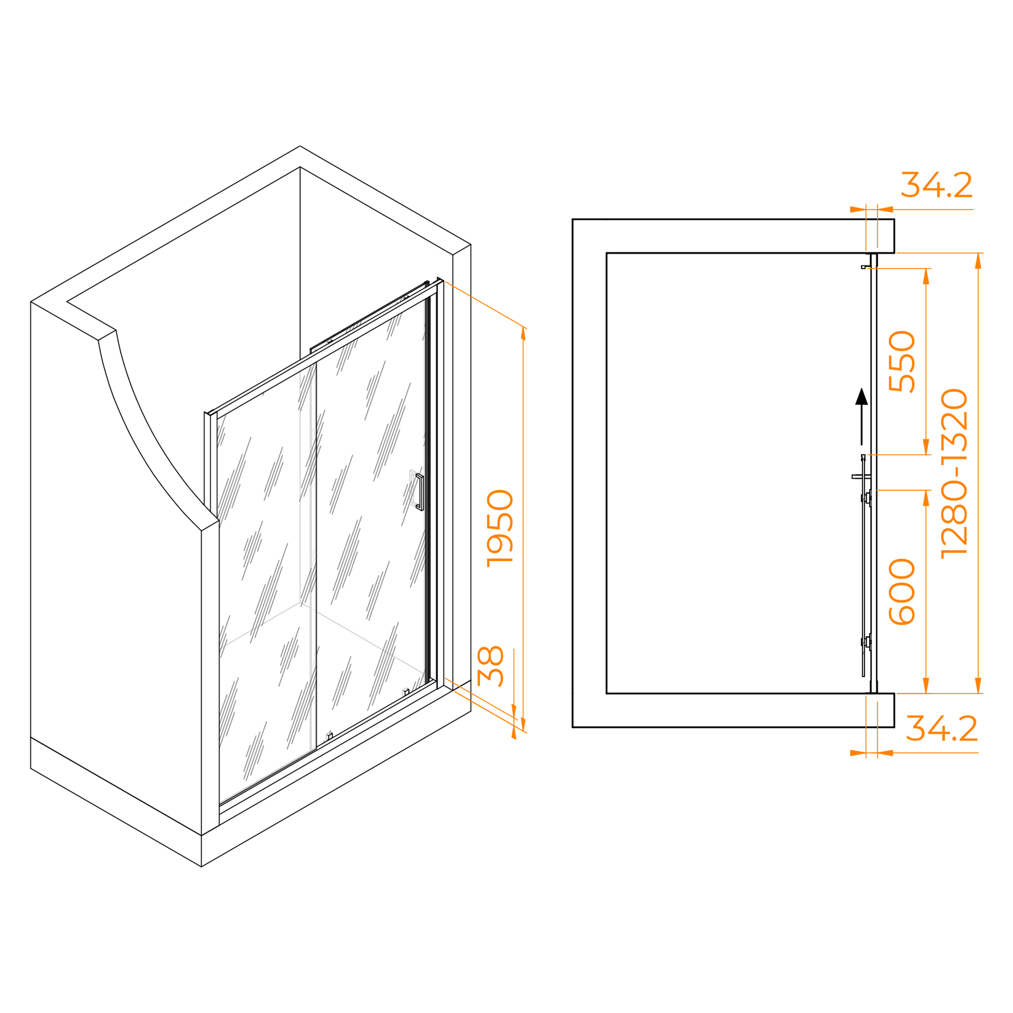 Высота общая двери составляет 1950 мм, а ее конструкция – раздвижная, что позволяет с комфортом использовать пространство в ванной комнате. Дверь имеет магнитный уплотнитель, обеспечивая первый класс герметичности и защищая ванную комнату от брызг воды.