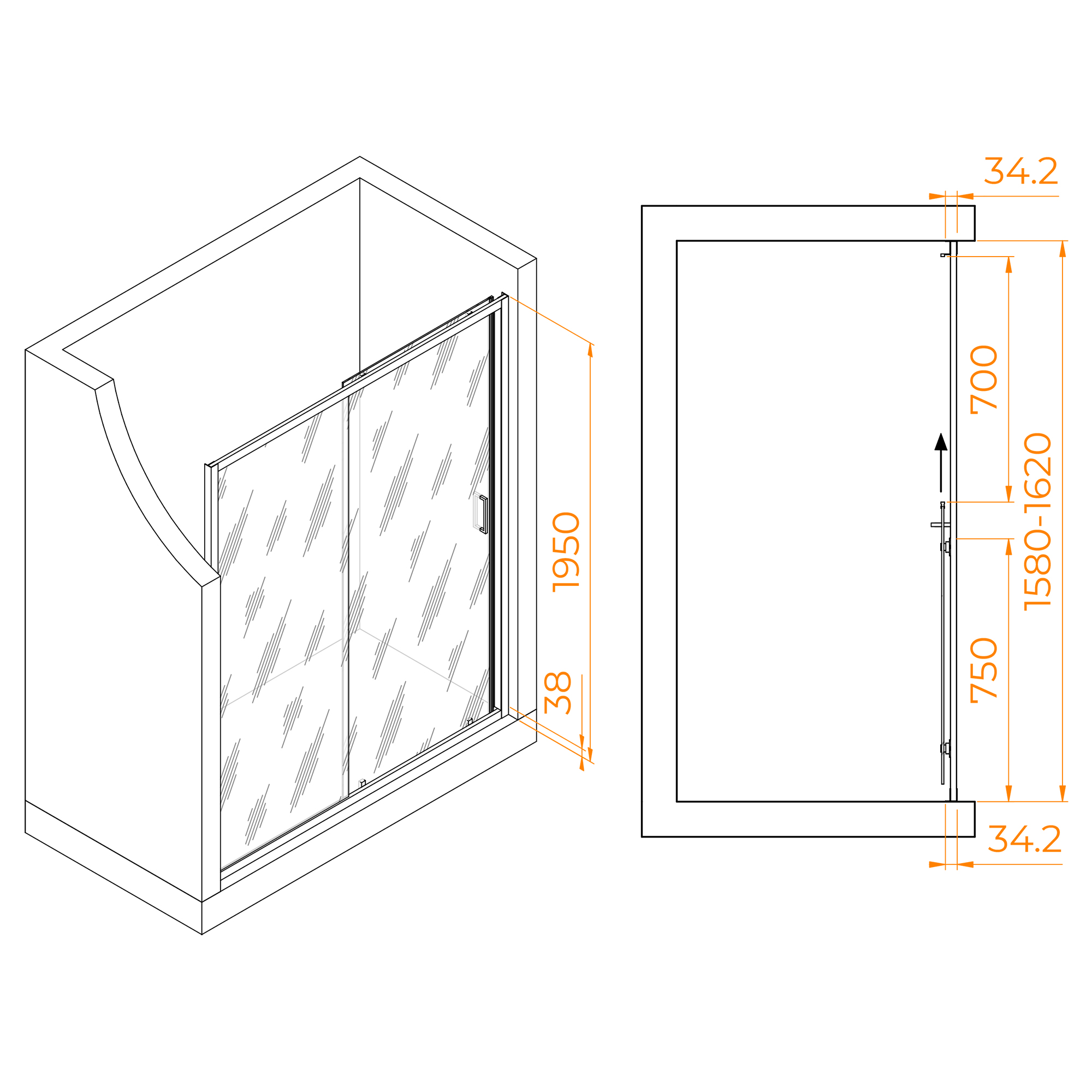 Толщина стекла двери составляет 6 мм и обладает высокой прочностью. Материал стекла выбран прозрачный, что позволяет сохранить пространственную свободу и прозрачность в ванной комнате. Цвет профиля двери выполнен в хромированном исполнении и добавляет глянцевый блеск интерьеру ванны.