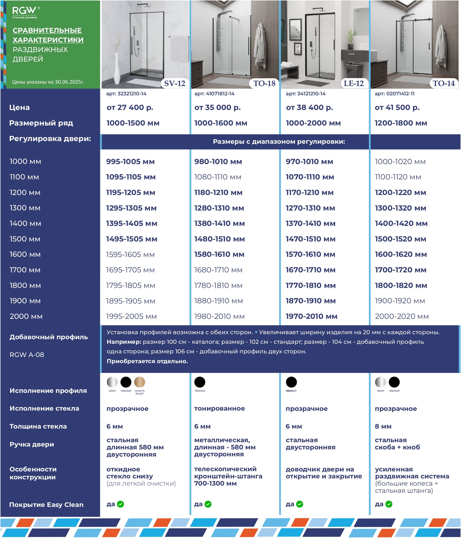 Душевая дверь RGW SV-12 — оптимальное решение для современных ванных комнат. Выполненная из качественных материалов, она оснащена 6-миллиметровым прозрачным стеклом и анодированным алюминиевым профилем цвета хром. Высота двери — 1950 мм, а раздвижная конструкция экономит пространство.