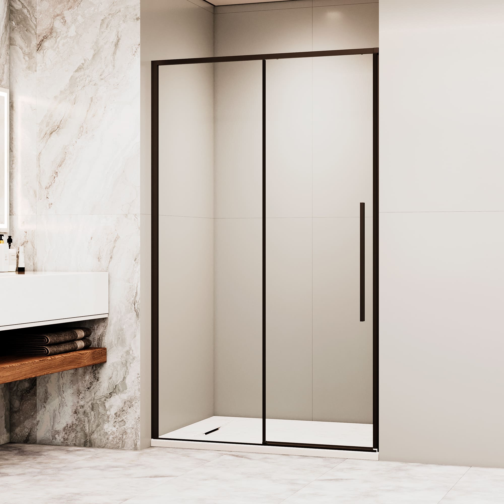 Особое внимание уделено деталям: дополнительный профиль позволяет точно отрегулировать дверь под размер ниши, а класс герметичности 2 гарантирует надежную защиту от протечек. Покрытие Easy Clean упрощает уход, а 15-летняя гарантия на роликовый механизм подтверждает высокую надежность конструкции. Корпус из анодированного алюминия устойчив к коррозии и механическим повреждениям, что обеспечивает длительный срок службы.