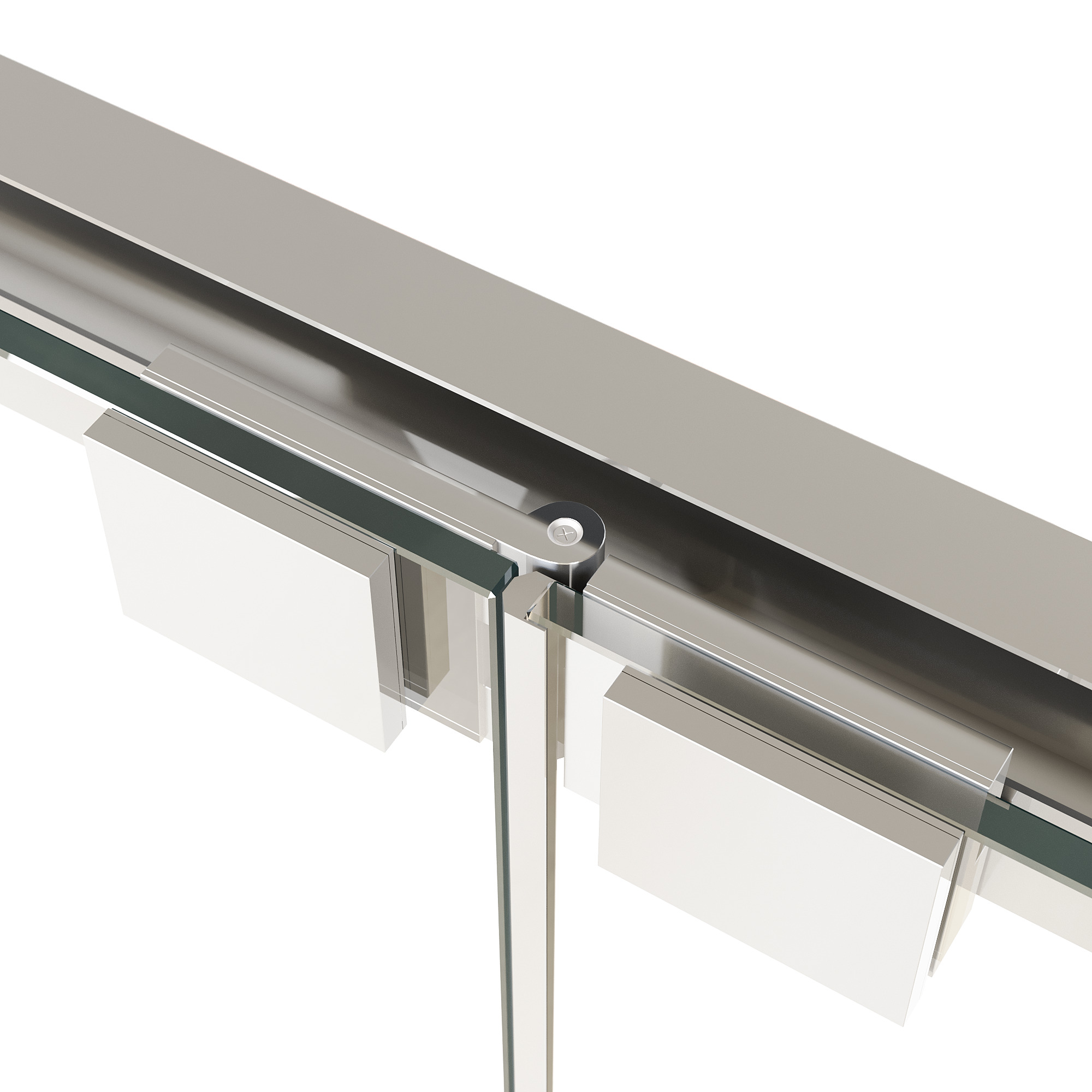 Петли с магнитом скрепляют два стекла. Магниты необходимы в данной конструкции для полной герметичности двери. Конструктивная связка «петля-магнит, магнит-профиль» обеспечивает максимальную герметичность изделия на протяжении всего срока эксплуатации душевой двери. Модель имеет фиксатор, который смягчает удар ролика при открытии.