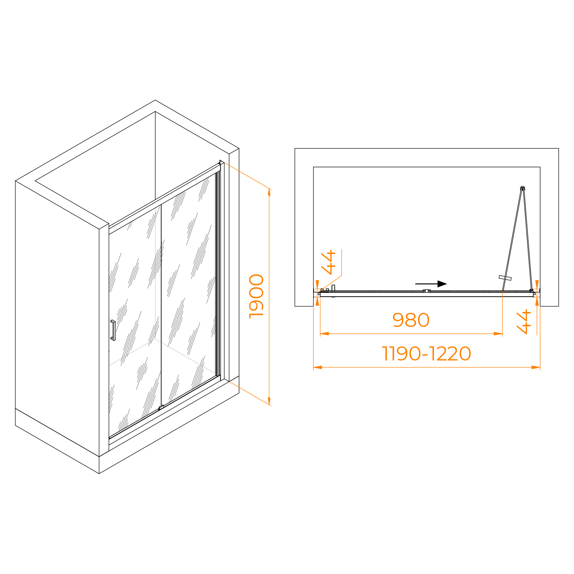 Дверь в душ имеет универсальную установку открытия – на левую или правую стороны.